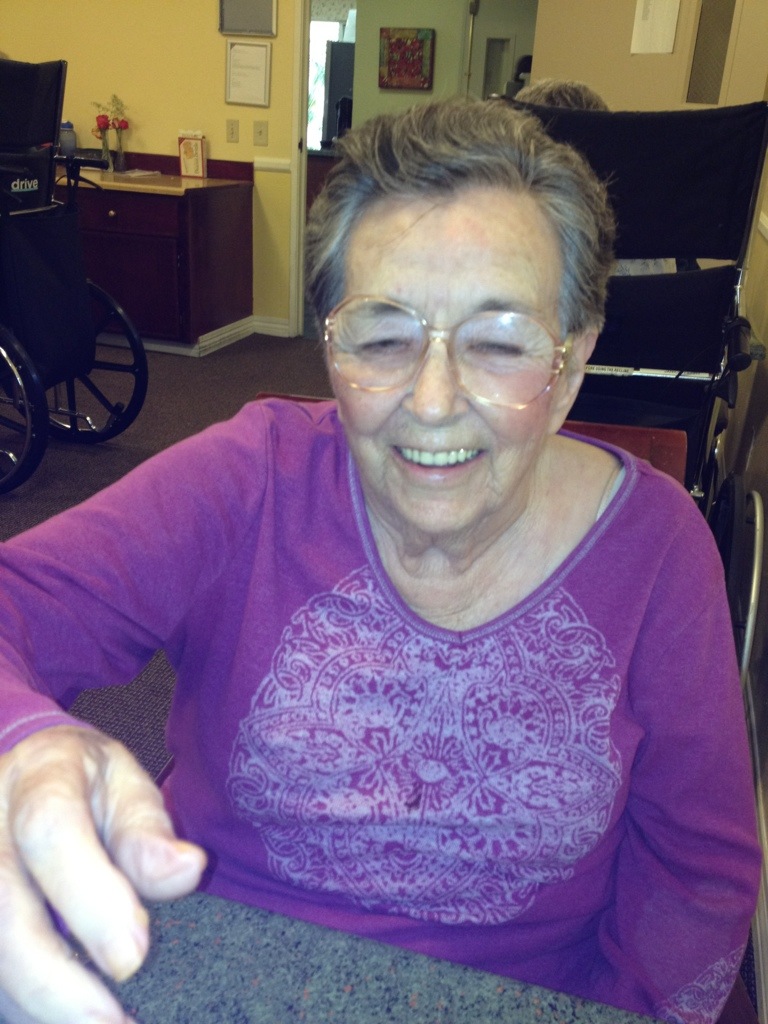 I have said that mom likes looking at photos. When I show her recent photos of herself, she says it is really her mom, grandma, and not herself. Oh well. This day she was bright and talkative. Really does not make a lot of sense, but she always recognizes me as a family member or one of her own. Have not heard my name in a while, even on good days. But she does tend to reach out and want to fix my hair and fix my shirt if anything is awry. Or tell me to hush if i am too loud. Don’t think that will ever change.
